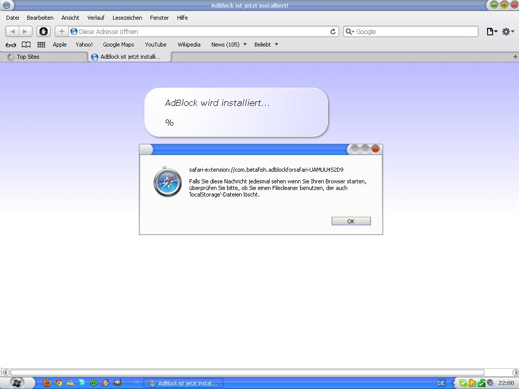 Eventuell handelt es sich aber auch einfach nur um einen Fehler im Safari Browser oder im Adblock Plugin, weil ich da was von "beta" in der Meldung lese. Beta bedeutet soviel wie "Testversion" (Argh, schüttel, mein Test Trauma meldet sich) :D