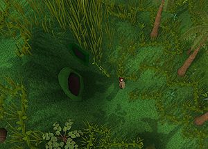 Damit der Horst bei den Feldiphügeln erreicht werden kann, muss zuvor einer kleiner Ranke zum Wachstum verholfen werden. Dazu wird entweder ein Holzstock aus Schloss Frenkenstein, ein Flechtholz vom Tai-Bwo-Wannai-Frühjahrsputz oder ein Stichelstock, der im Jagdladen erworben werden kann, benötigt. Es wird eine Zeit dauern, bis die Ranke hoch genug ist, um an ihr hochzusteigen und den Horst erreichen zu können.