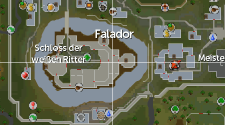 | Saradomin befindet sich auf der zweiten Etage des Ostflügels im Schloss der "Weißen Ritter" in Falador.